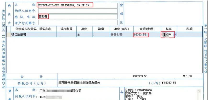 贷:主营业务收入-出口征税收入(fob*汇率/1.13)